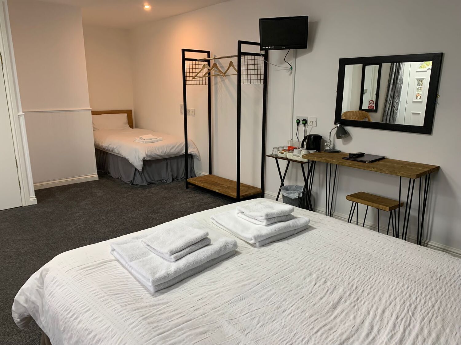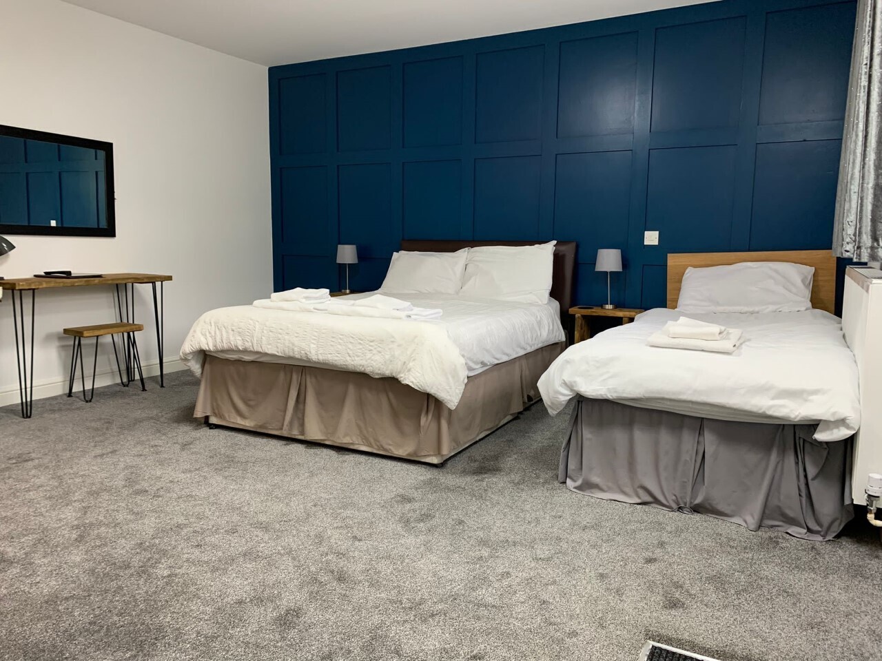 We have two family rooms available. One which sleeps 3 and has a bath with a shower over. The second sleeps 4 and is our accessible room.